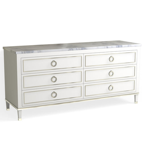 Henley 6 Drawer Dresser-Polished Nickel and White