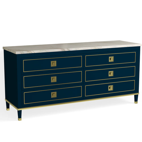 Henley 6 Drawer Dresser-Satin Brass and Navy Blue