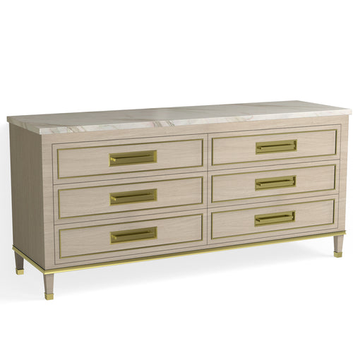 Henley 6 Drawer Dresser-Satin Brass and Cerused Oak