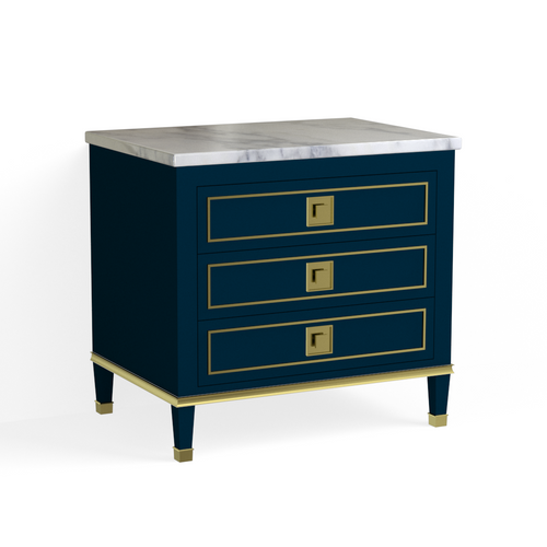 Henley Closed Nightstand-Satin Brass and Navy Blue