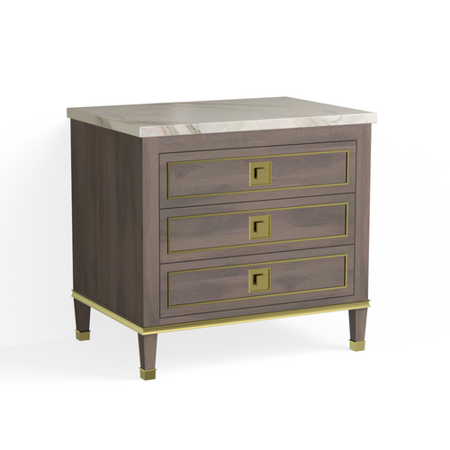 Henley Closed Nightstand-Satin Brass and Granite Walnut