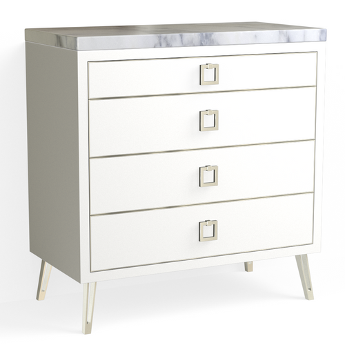 Josie 4 Drawer Dresser-Polished Nickel and White