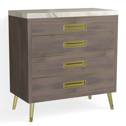Josie 4 Drawer Dresser-Satin Brass and French Walnut