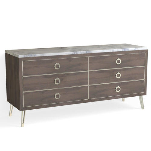 Josie 6 Drawer Dresser-Polished Nickel and French Walnut
