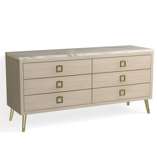 Josie 6 Drawer Dresser-Satin Brass and Cerused Oak