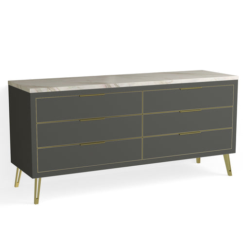 Josie 6 Drawer Dresser-Satin Brass and Harbor Grey