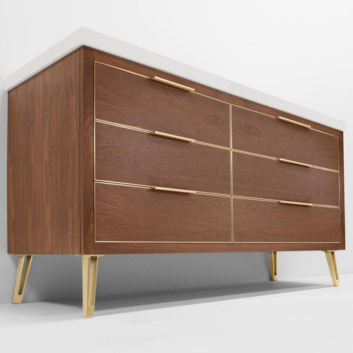 Josie 6 Drawer Dresser-Satin Brass and French Walnut