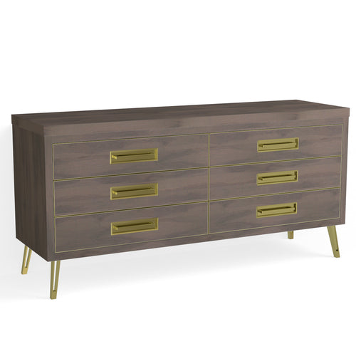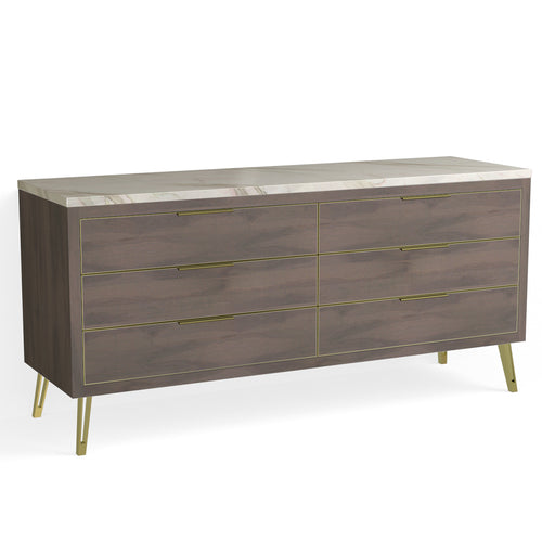 Josie 6 Drawer Dresser-Satin Brass and Granite Walnut