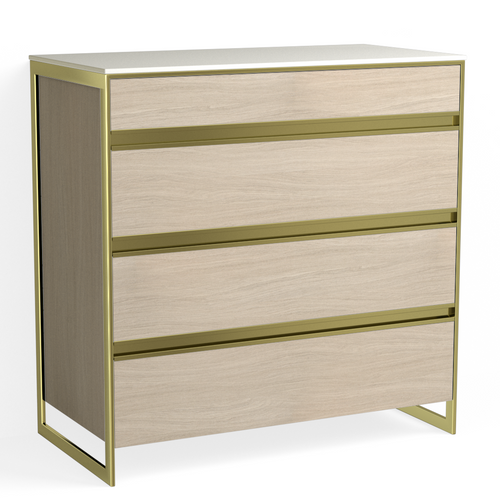 Avento 4 Drawer Dresser-Satin Brass and Cerused Oak