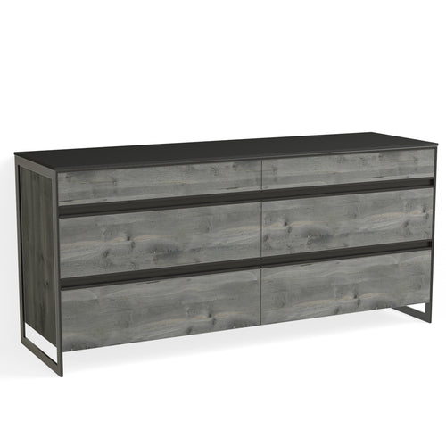 Avento 6 Drawer Dresser-Matte Black and Grey Reclaimed Oak