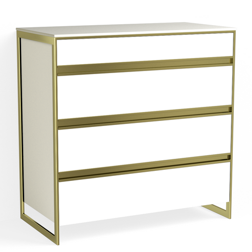 Avento 4 Drawer Dresser-Satin Brass and White Fenix