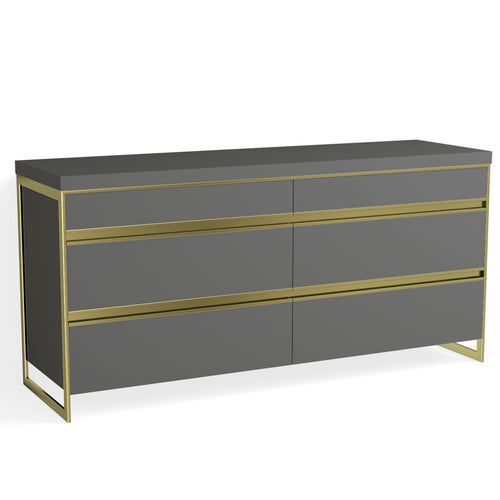 Avento 6 Drawer Dresser-Satin Brass and Bromo Grey Fenix