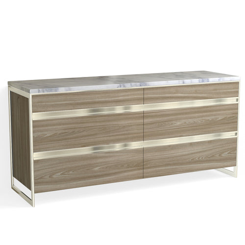 Avento 6 Drawer Dresser-Satin Brass and Cerused Oak